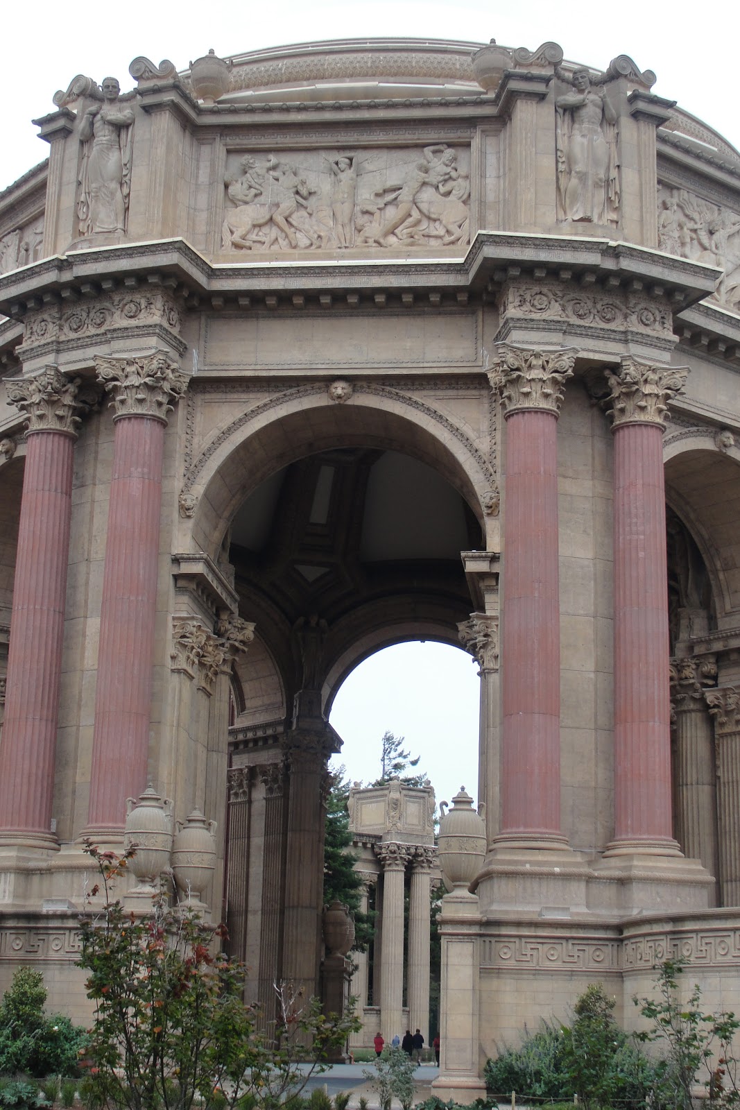 We were able to get on and off the shuttle, so we stopped and strolled around the Palace of the Fine Arts. The grounds look like a Roman temple with Corinthian columns and carved statues. The scale was imposing.